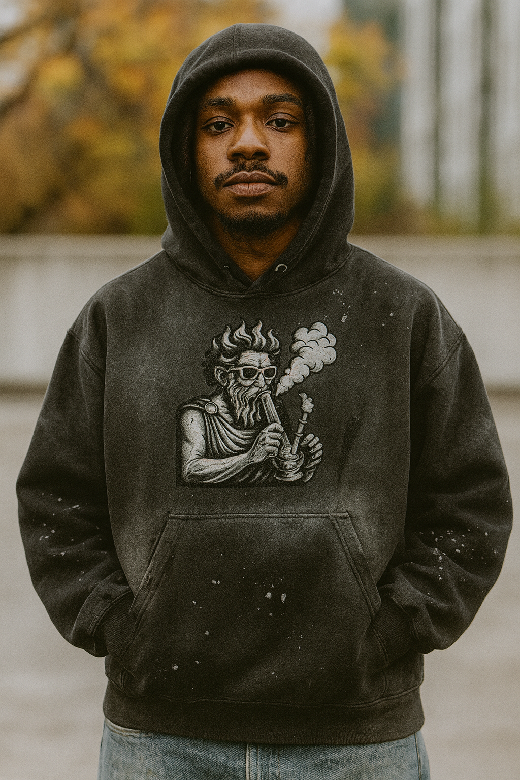 Vintage Washed HadesKushCollective Frayed Fleece Hoodie